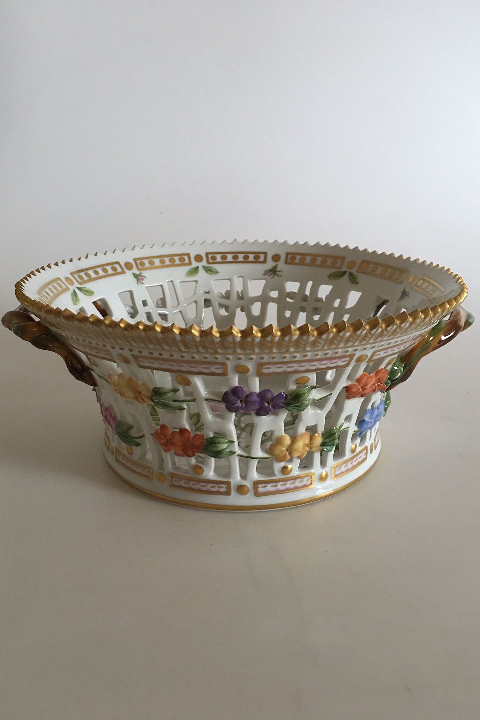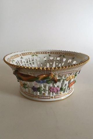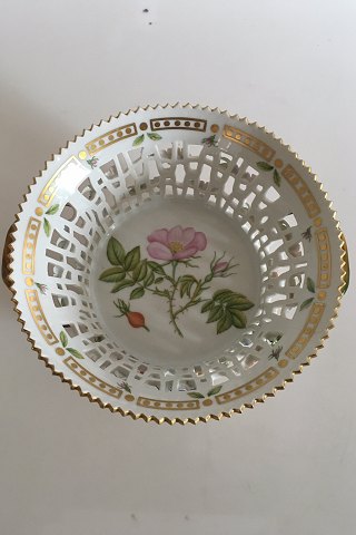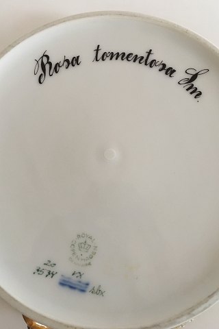 Kongelig Porcelæn Flora Danica Stor Frugt skål 20/3534 eller 397. Blomsten er: Rosa tomentosa Sm. Første sortering og i perfekt stand. Måler 21,5cm i dia.
