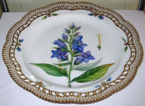 Royal Copenhagen Flora Danica round serving plate 20/3574 or 381. The flower is: Campanula latifolia L. First quality and in perfect condition. Measures 29cm.