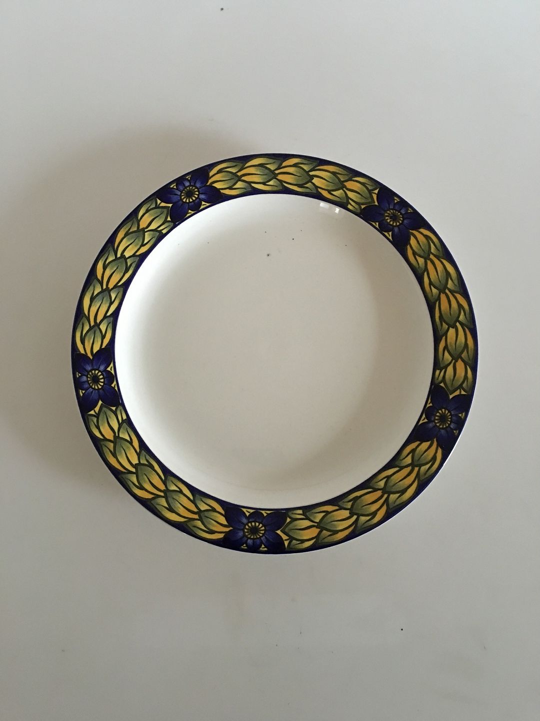 Blue Pheasant is a faience dinnerware service. The decoration dates back to the early 20th century when people appreciated and cherished nature, just as the present generation does now. The decoration was created by Christian Joachim (1870-1943), he was the artistic driving force in the renewal of Danish faience around the turn of the century. Danish faience has become a treasured cultural heritage, characterized by generous, sweeping shapes and liberally applied decorations in exuberant colors. In 1990 Royal Copenhagen reproduced the decoration to a dinner service. Blue Pheasant is dominated by an imaginary bird in blue and yellow in a style that is very characteristic of Joachim's work. Faience is fired at rather low temperatures, and this makes it possible to use many different colors. The fine faience glaze produces a special dept of color and refraction that give the colors intensity and luster.