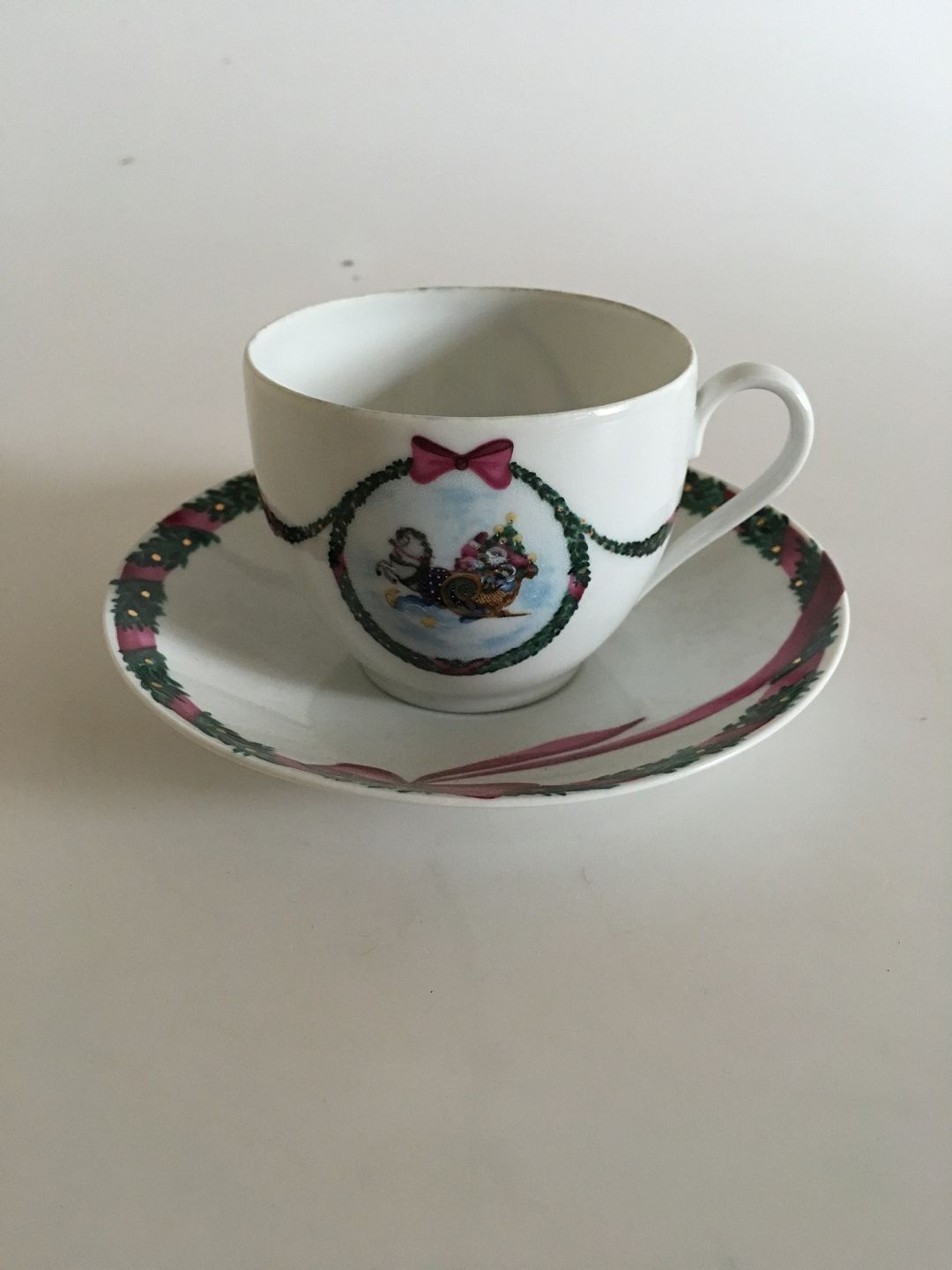 Royal Copenhagen Jingle Bells Coffee Cup and Saucer No 1169081. Cup measures 8 x 6.5 cm. In good condition. We have an additional three cups without the saucer in stock, contact us regarding prize for these.