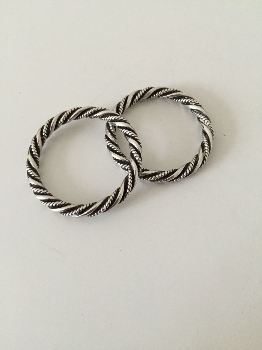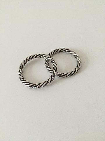 Georg Jensen Par ringe i sterling Sølv No 58a. De to ringe måler 3,5 cm dia. Vi er ikke sikkert på deres anvendelse. Vejer 7,8 gram hver.