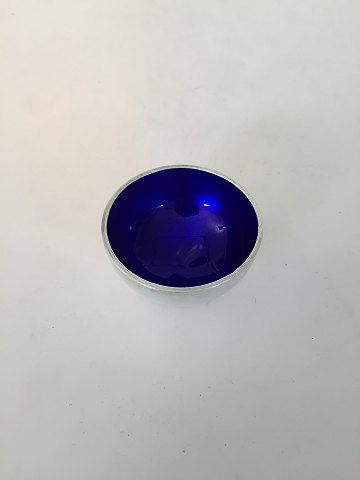 Mogens Bjorn-Andersen small dish with blue Enamal work Birkerod. Measures 5,5cm dia and 3cm high. In good condition, a little scrop on the rim and a monogram/decoration on the side.