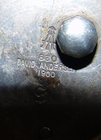 David Andersen Gustav Gaudernack indvendigt forgyldt bæger fra 1900 i Dragestil. Måler 7,5cm high and 4,3cm dia. og i god stand. Har monogram og inscription "4.october"