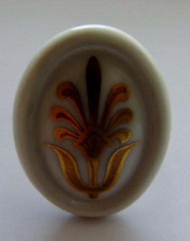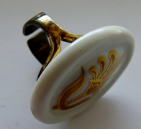 Royal Copenhagen Ring in Sterling Silver and Porcelain with gold decoration. Measures 3,2cm. Weighs 13,6g / 0,48oz