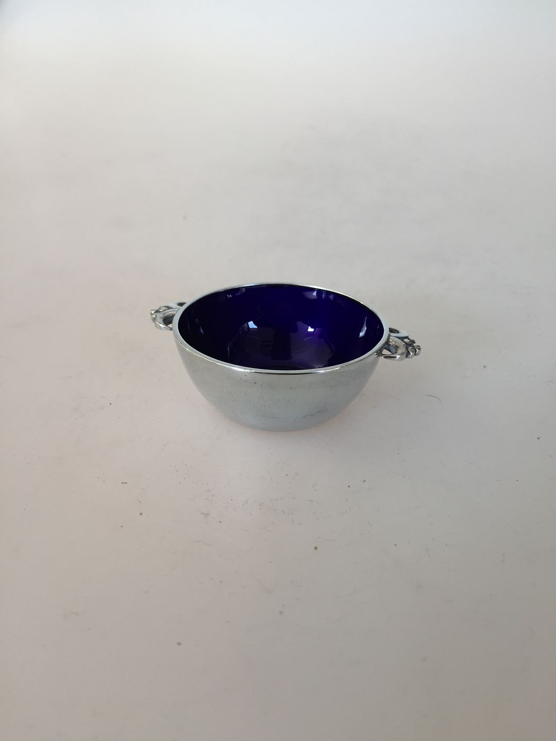 Evald Nielsen Saltcellars with blue enamel in Sterling Silver. Measures 5,8 x 1,9cm ans is in good condition. Marked: Sterling silver, Evald Nielsen, Denmark.