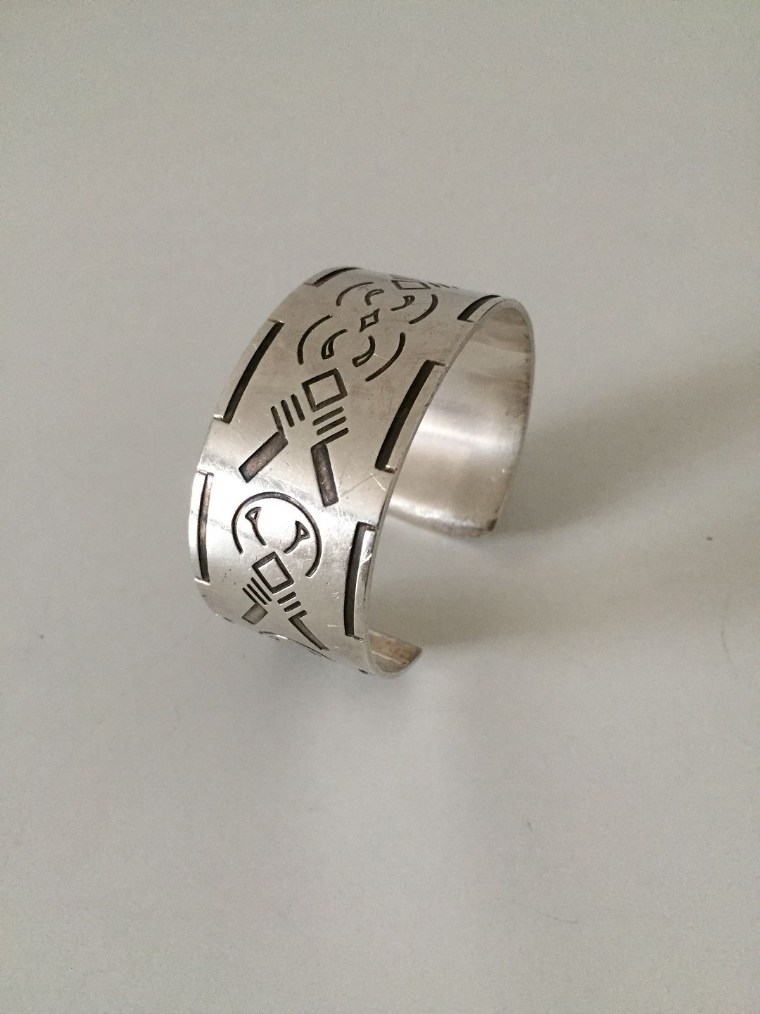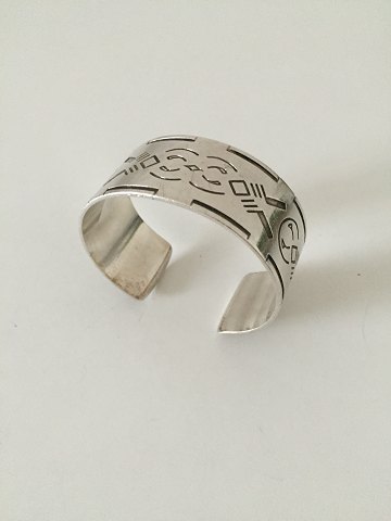 Wide Cuff Design with Native American Motif No 64. Designed by Harald Nielsen. Dates to after 1945. Measures 6 cm dia / 2 23/64". Weighs 43 g / 1.50 oz.