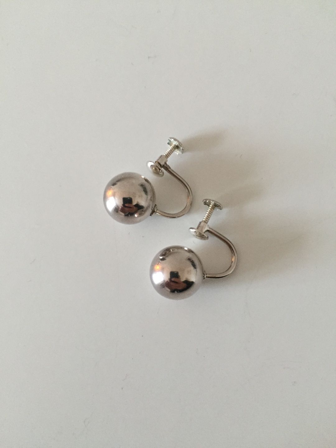 Georg Jensen Sterling Sølv Øreskruer No 141A 1904-1914. Mærket med det tidlige GJ mærket på kuglen (J igennem G), og skuren Denmark, 925. I fin stand, uden buler. Måler 1,2 cm dia. Vejer 9 g