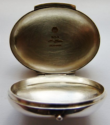 Hans Hansen Karl Gustav Hansen Pill Box in Sterling Silver. Measures 4,5cm and is in good condition.