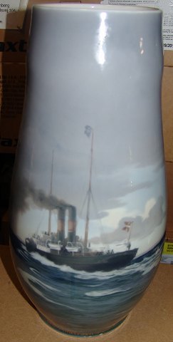 Bing & Grondahl Unique Vase by Christian Benjamin Olsen from 1910 No 188. Measures 39cm high. The condition is good, but has two small footrim chips and gold inscriptions on the bottom part.