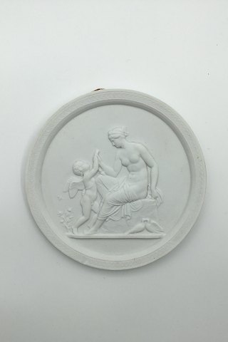 Royal Copenhagen Biscuit Platte Amor klager til Venus over stikket af en bi No 84. Kopi af O.H.B. Olrik fra 1849 after Thorvaldsens original fra Rom 1809. Mindre overfladeskår nederst til venstre. Måler 14 cm.