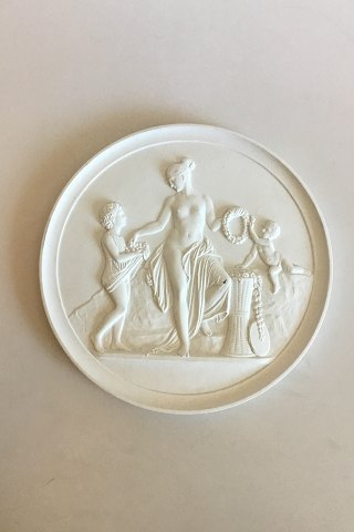 Royal Copenhagen Bisque Plate Childhood and Spring No 116. Copy from 1842-43 by N.G.Henriksen after Thorvaldsens original from Rom 1836. Measures 30cm