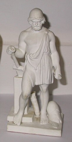 Figure of Vulcan. B. Thorvaldsen for Royal Copenhagen c. 1880-1900. Factory marked on the backside of the base. The beek on the tool in his left hand i broken. 17 cm high.