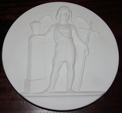 L. Vieth Bisque Gravestone Plate. Measures 20cm (7.87 inch) and is in good condition. Can be mounted with steelwire or leather strap for hanging.