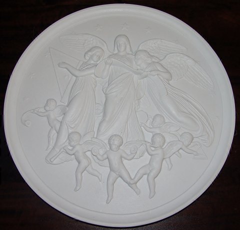 Bing & Grondahl Bisque Plate Christmas Joy in Heaven No 111. Copy from 1843 after Thorvaldsens original from Nysų in 1842. Measures 33cm