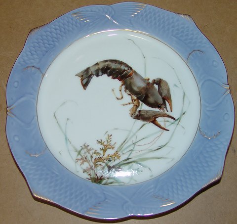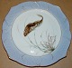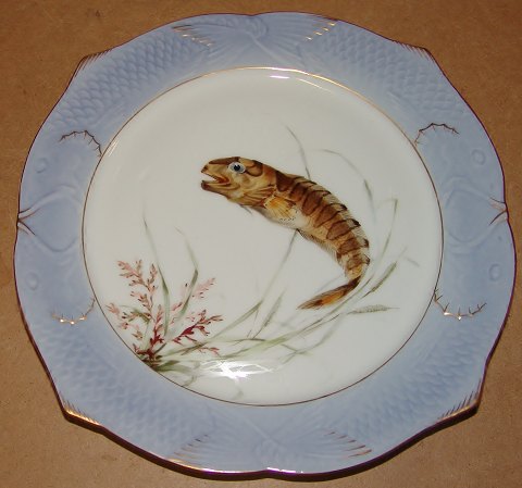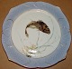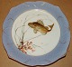 Royal Copenhagen Fish Blue Fish Plate in overglaze with Fish Relief Border. This is the early model. Done in a very art nouveau style, from the period. Marked with the rare export mark, used on request from USA for export goods in 1892. Measures 24,5cm and all in great condition.