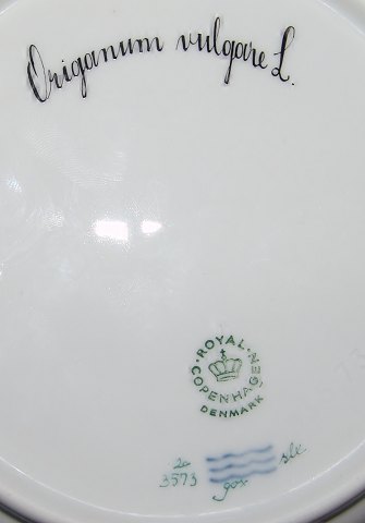 Royal Copenhagen Flora Danica Salat Tallerken No 20/3573. Måler 19,7cm og er i perfekt stand. Latinsk navn "Origanum vulgovre L".
