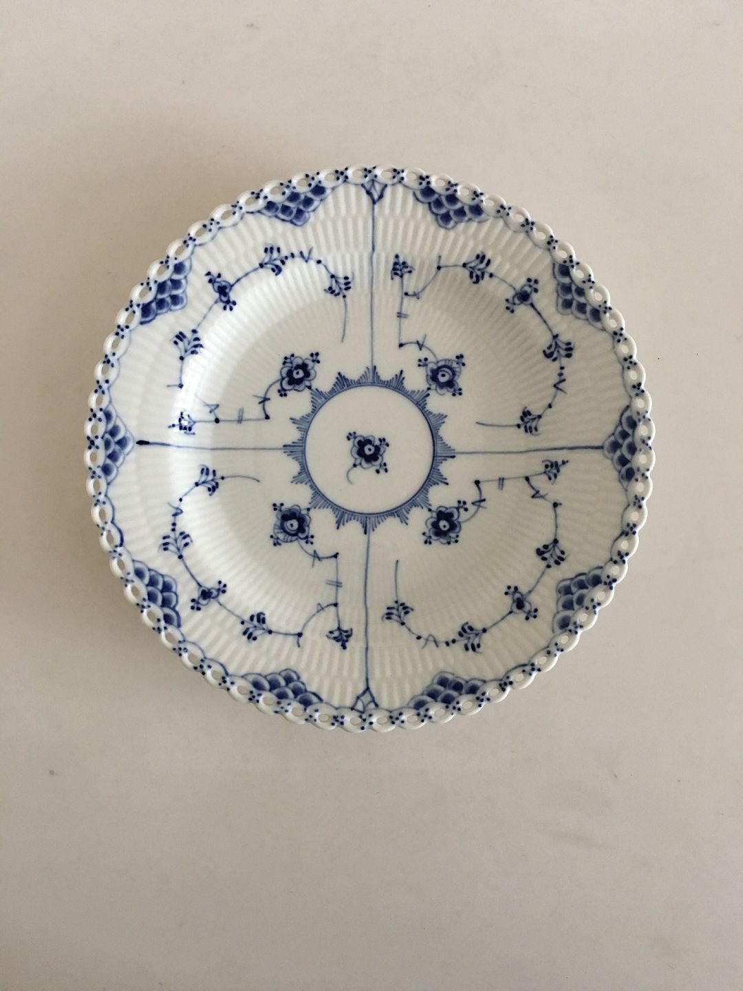 Royal Copenhagen Musselmalet Helblonde Spisetallerken No 1084. Måler 25cm og er i god stand. 2 sortering