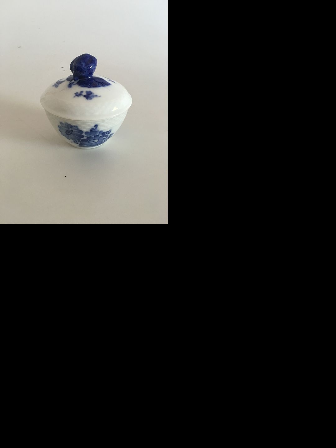 Royal Copenhagen Blue Flower Braided Sugarbowl with Lid No 8081. Measures 9,5 x 10 cm (3 47/64 x 3 15/16 in) and is in good condition.