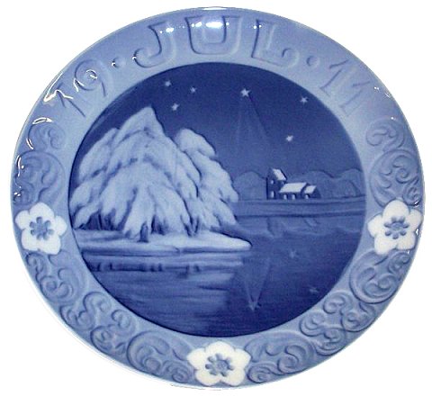 Royal Copenhagen Small 1911 Christmas Plate (Thief Plate). Designed by Stephan Ussing. House in Winterlandscape.