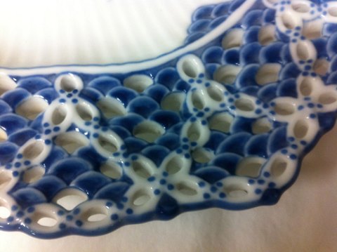 Royal Copenhagen Musselmalet Helblonde Kæmpe Gennembrudt Fad No 1120. Måler 40cm og er i god stand.
