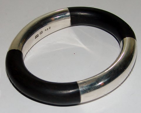 Georg Jensen Moderne Armbånd i Sterling Sølv og Ibenholt No 33A. Indvendigt måler er 6,8cm. I perfekt stand og udført i en lækker tung kvalitet.