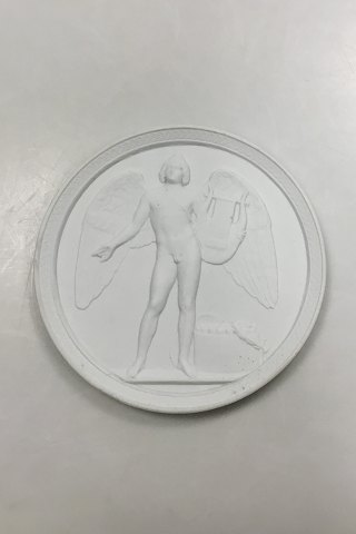 Royal Copenhagen Bisque Plate Genius of Poetry No 105. Copy by Th. Mule 1850 after Thorvaldsens Original Copenhagen 1844. Measures 13cm.