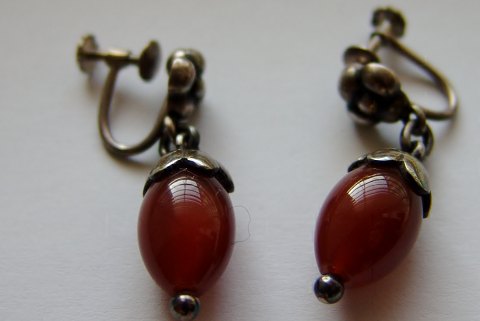 Par Georg Jensen Sterling Sølv Øreskruer med Sten No 4. Måler 3,6cm og er i perfekt stand.