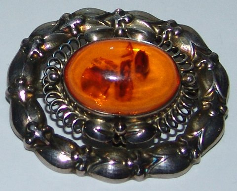 Georg Jensen Sterling Sølv Broche med Rav No 109. Måler 5,2cm og er i god stand. Efter 1945.