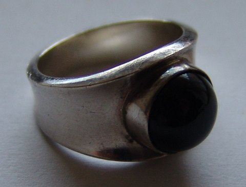 Georg Jensen Sterling Sølv ring med Sort Sten No 5380. Måler 1,7cm og er i god stand. Størrelse 53.