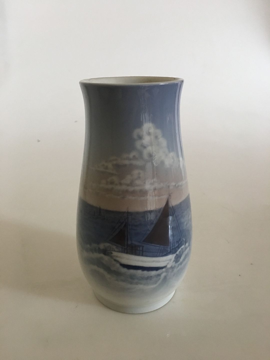 Bing & Grøndahl Vase with Ship No 1302/6211. Measures 17,5 cm and is in good condition.