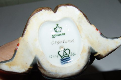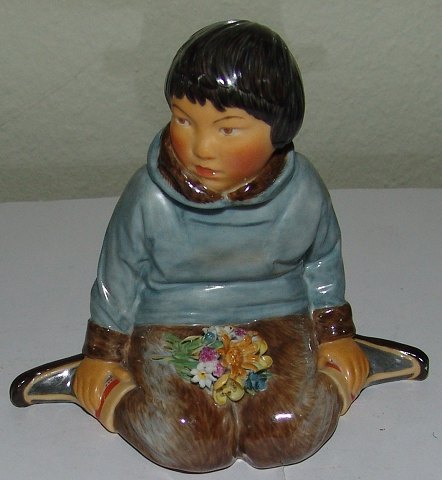 Royal Copenhagen Overglasur Figur Grønlandsk Dreng No 12419. Måler 9cm og er i god stand, men har lille afslag på blomst. Designet af Carl Martin-Hansen.