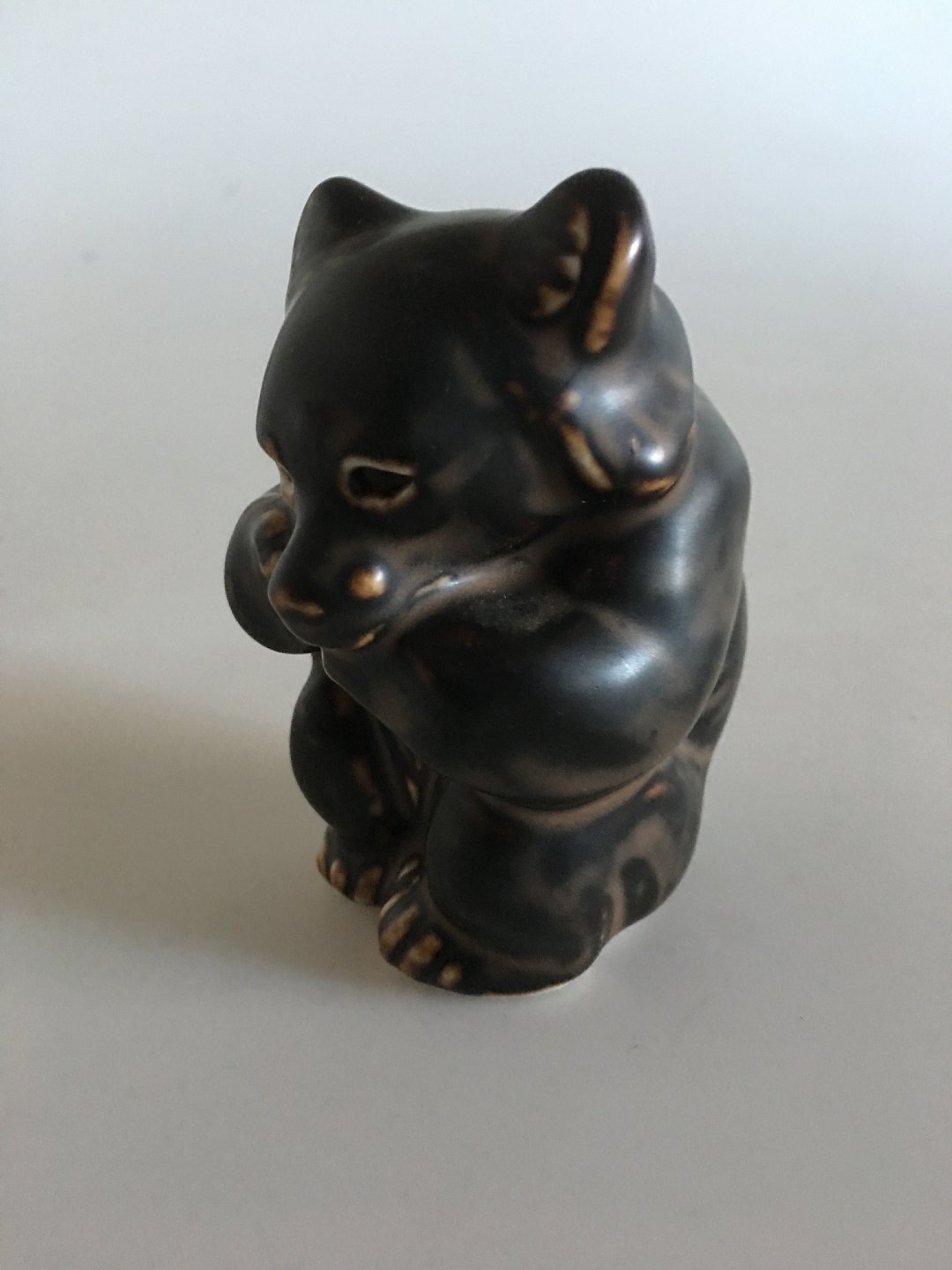 Royal Copenhagen Stentøjsfigur Brun Bjørneunge No. 21435. Designet af Knud Kyhn. I perfekt stand. Måler 8,5 cm (3 11/32 in.)