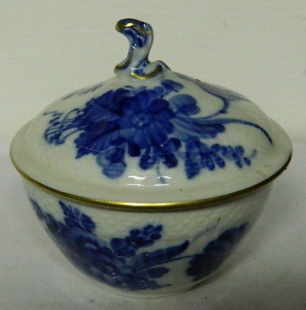 Royal Copenhagen Blå Blomst Svejfet Sukkerskål No 1678 med Guld. I god stand.