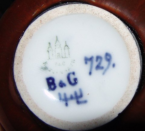 Bing & Grondahl Unique Vase by Effie Hegermann-Lindencrone No 729 with silver inlay and blue Enamel Glaze. Measures 10,2cm and is in good condition. Has silver inlay and the blue Glaze almost looks like enamel.