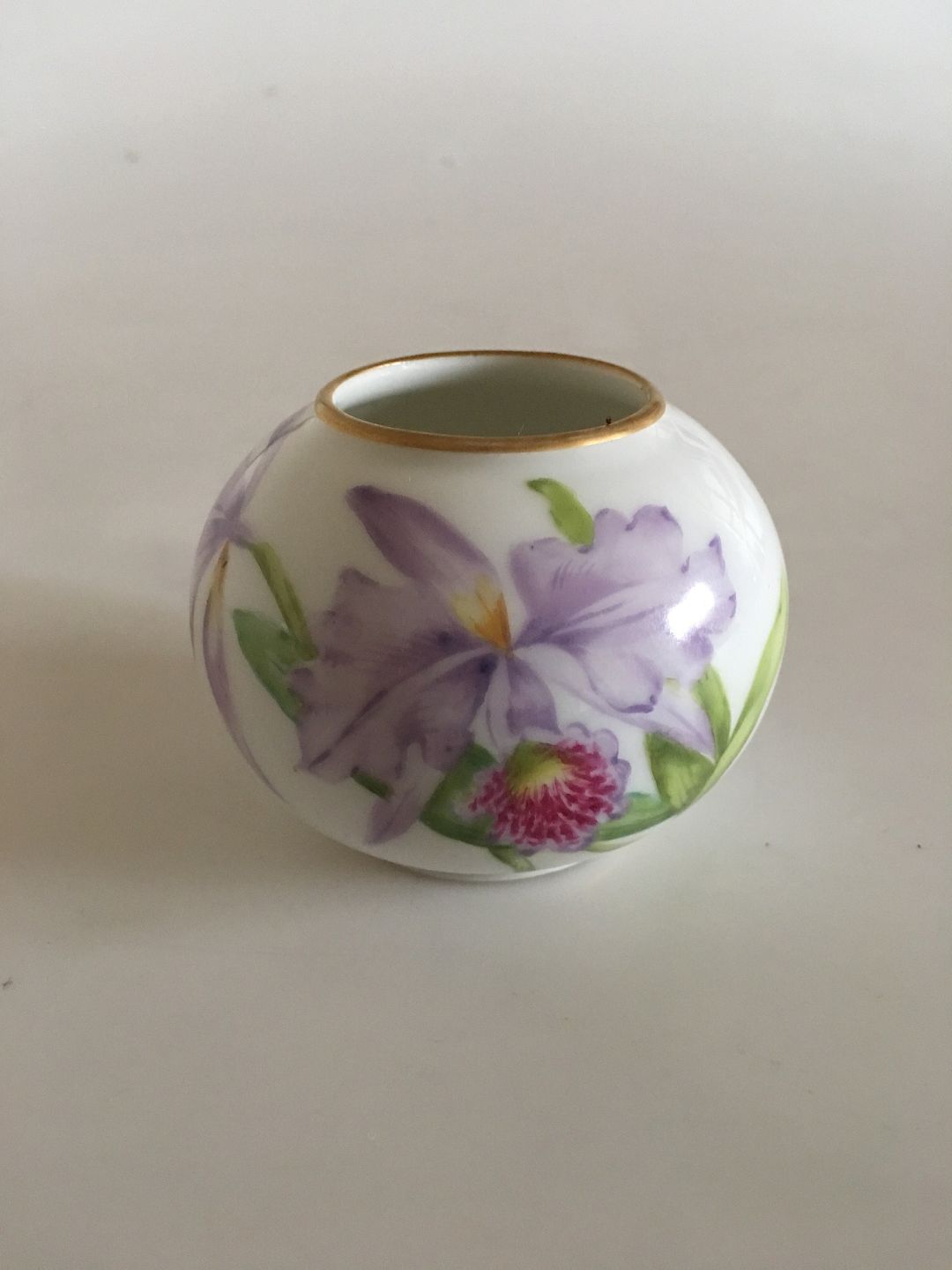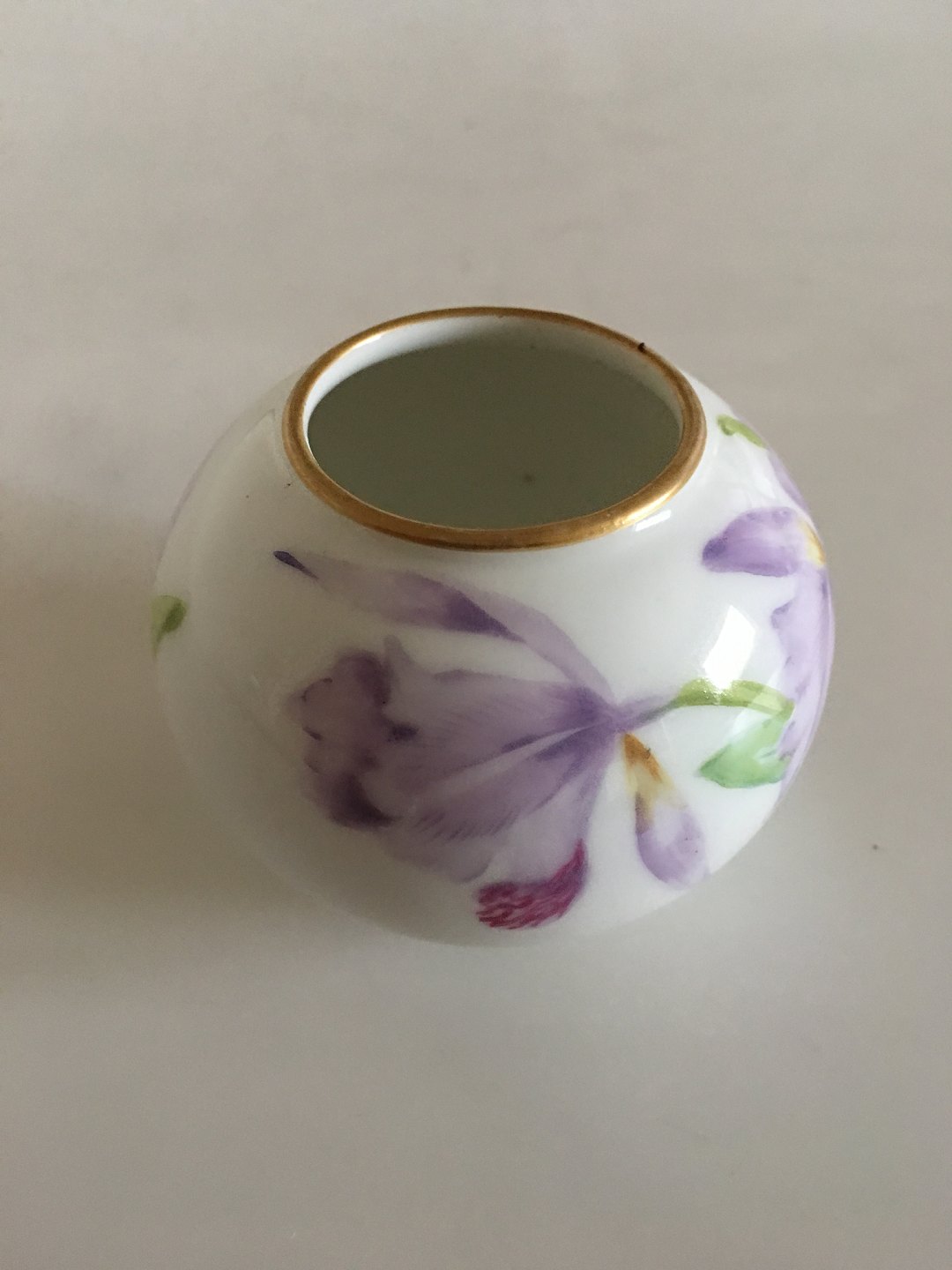 Royal Copenhagen Art Nouveau Vase in overglaze with flower motifs. Measures 5,5cm and is in good condition.