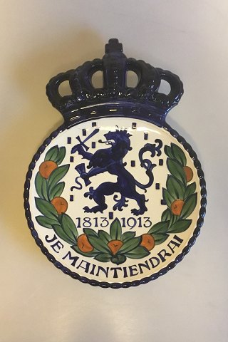 Aluminia Commemorative Plate Dutch Oranger Plate from 1913. Measures 37 x 27,5cm. Has a hairline, that can be seen on the picture. Done on the occation of the 100th year jubilee of the House Oranien.