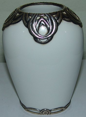 Bing & Grondahl Unique vase by Erik Magnussen with silver mounting from 1935 No 35. Measures 15,5cm.