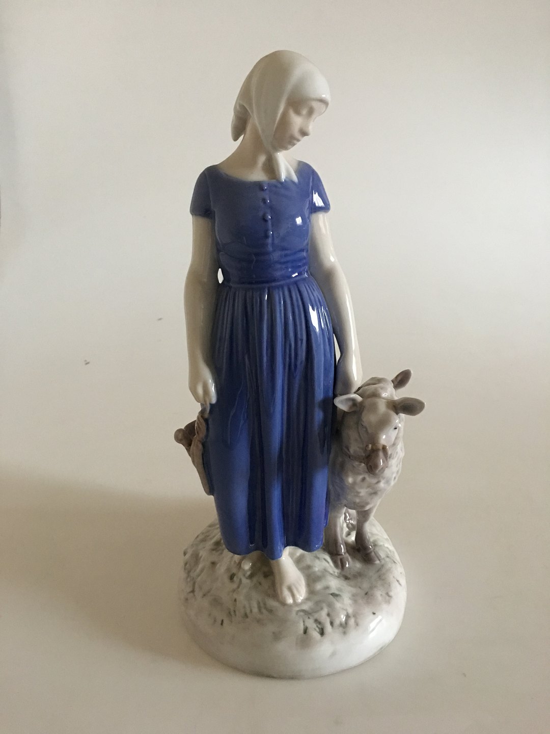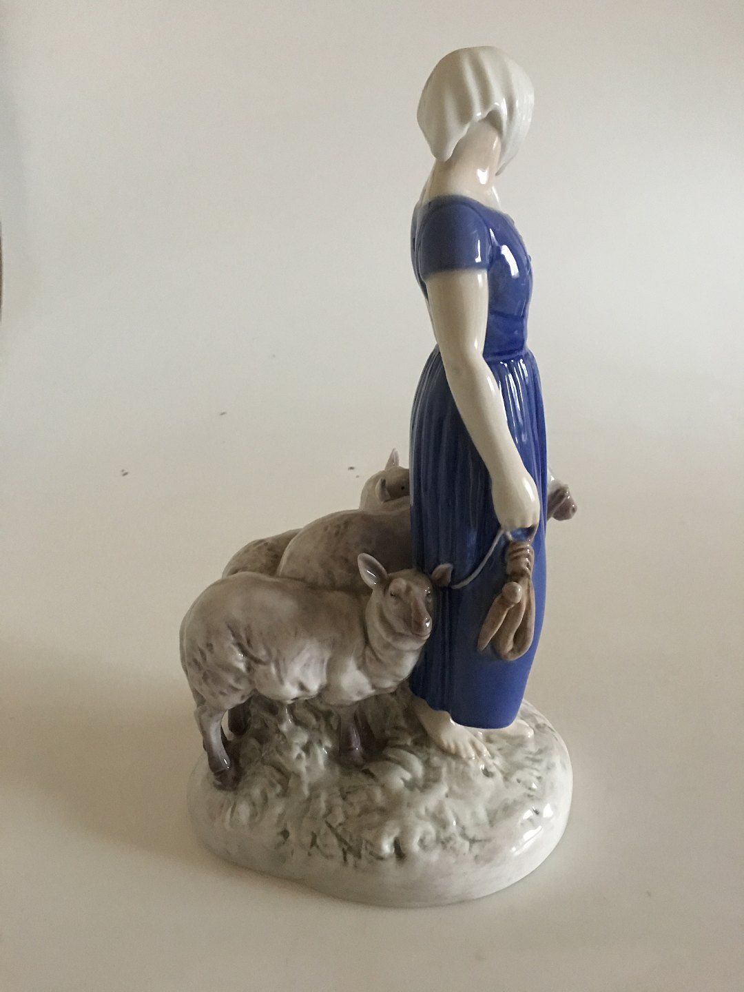 Bing & Grondahl Figurine Girl with Sheep No 2010. Measures 26 cm (10 15/64 in) and is in good condition.
