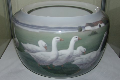 Bing & Grondahl Art Nouveau Flower Pot with Geese by Emma Krogsbøll No 6350/17B. Measures 17cm high and 27cm wide. In perfect condition.