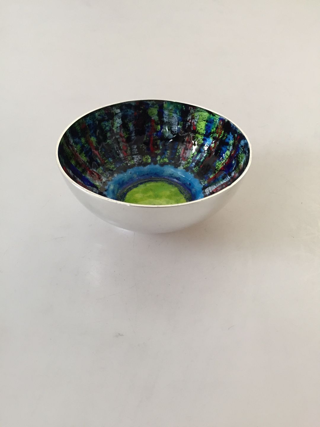 Anton Michelsen Inger Hanmann Sterling Silver bowl with enamel. Measures 9,5cm x 4cm and is in good condition.