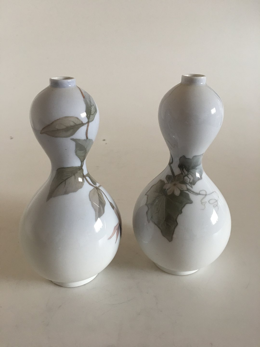 Royal Copenhagen Art Nouveau Pair of Gourd Shaped Vases No 250/121. Measures 17,5cm and is in perfect condition.