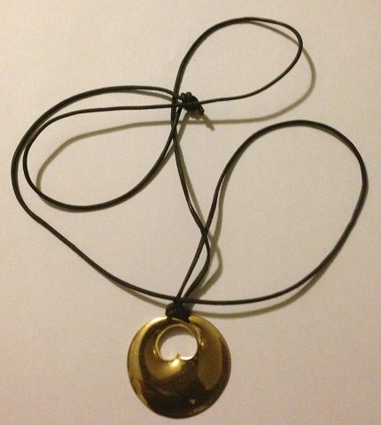 Georg Jensen Guld Vedhæng med læderkæde af Torun No 991. Måler 3,8cm x 3,6cm og er i god vintage stand med original læderkæde. Vejer ca. 15gram