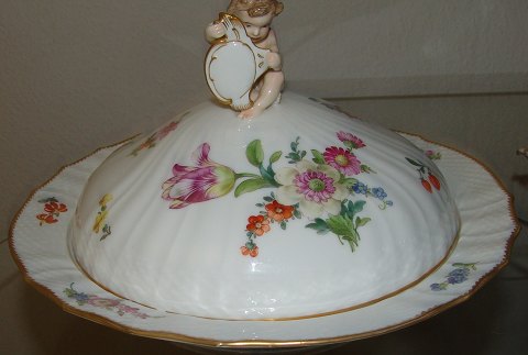 Royal Copenhagen Saxon Flower Large Lidded Serving Tray with Putti. In good conition, but has a few tiny chips, see pictures.