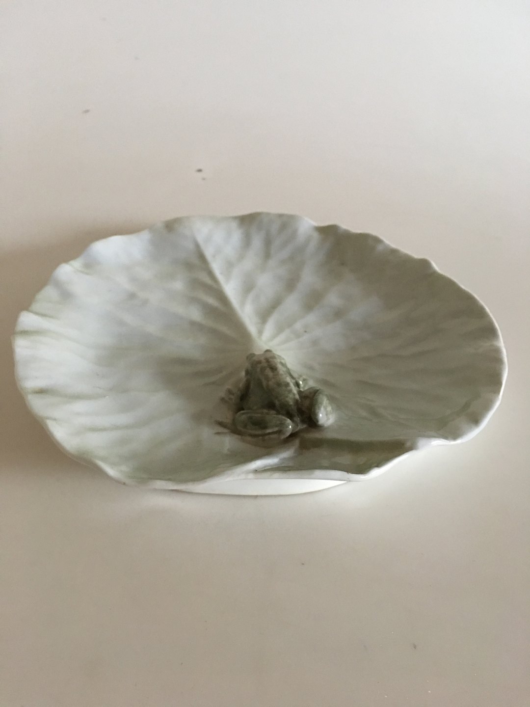 Royal Copenhagen Art Nouveau Frø på Åkande Blad No 12/5. Måler 26cm og er i perfekt stand.
