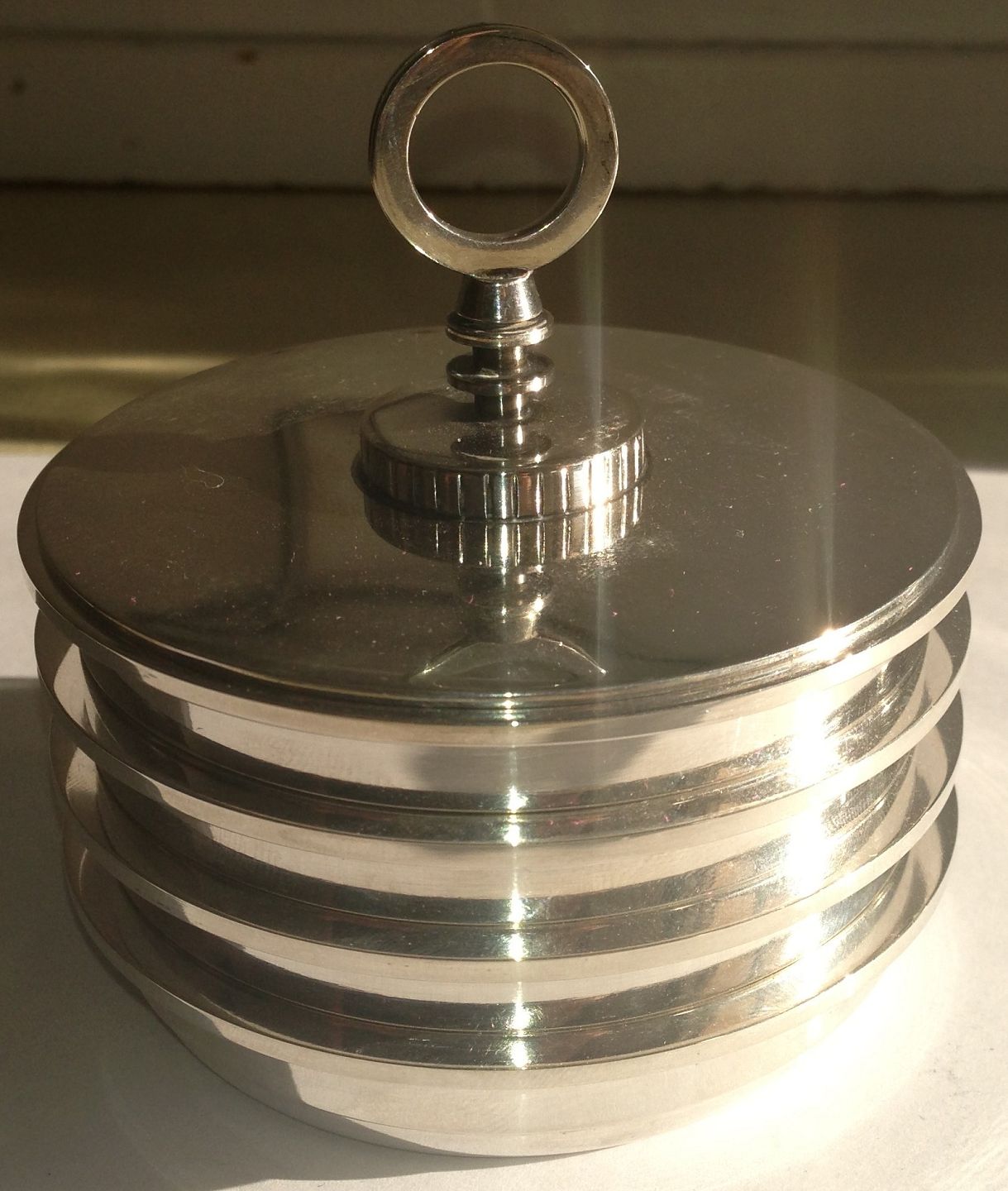 Georg Jensen Sterling Silver Sigvard Bernadotte Coasters with lid No 817. Measures 7,5cm x 7,5cm and is in perfect condition.