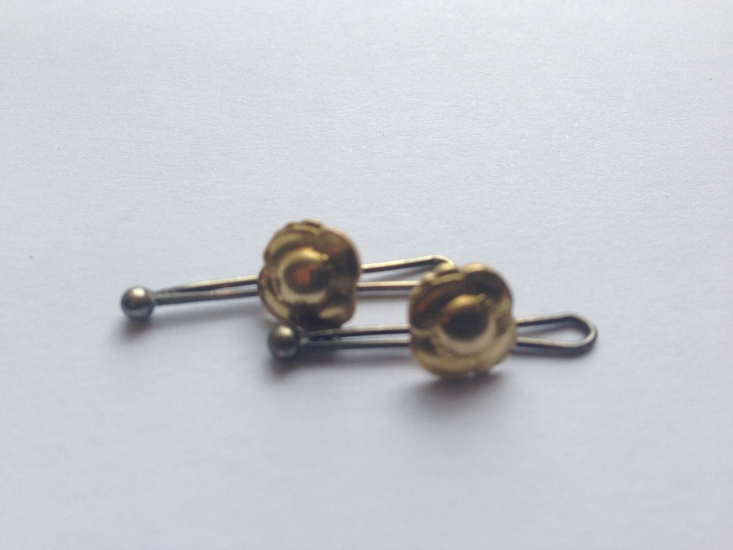 2 x Georg Jensen Gold Buttons 18K No 100. Measures 1cm and the pin which is in silver measures 2,6cm (1 1/32"). Funeral buttons?? Weighs 2g / 0,07oz