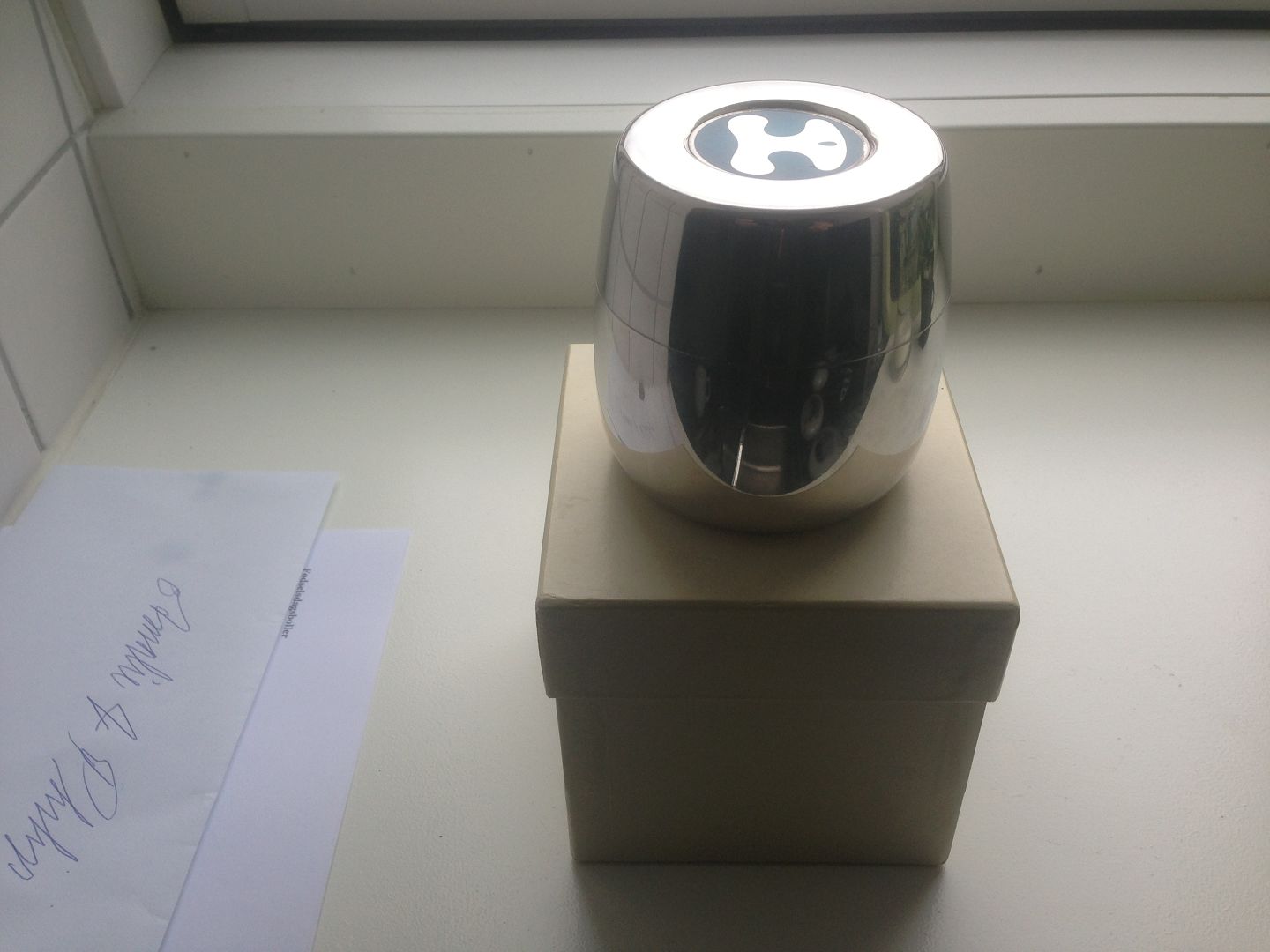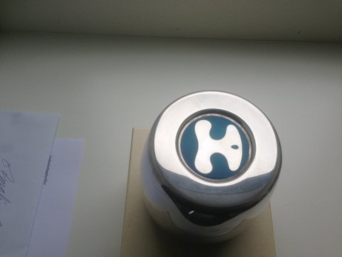 Georg Jensen Henning Koppel Sterling Silver Lidded box with enamel. Measures 8,3cm high and in perfect condition. Comes with original box.