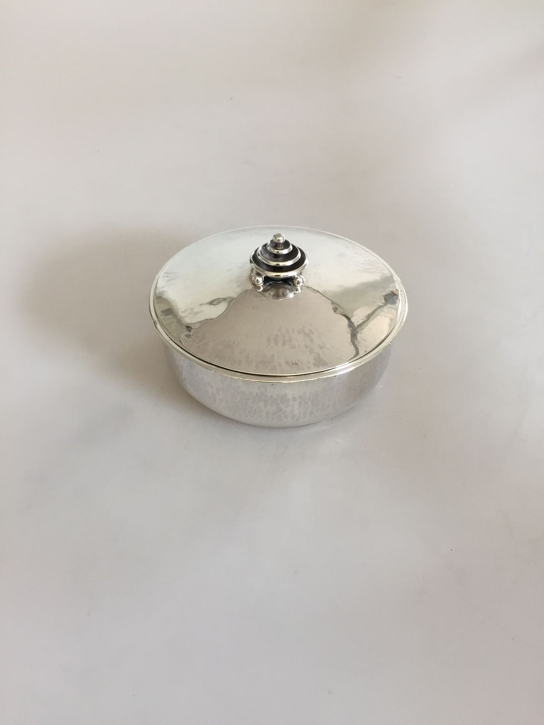 Hans Hansen lidded box in Sterling silver by Karl Gustav Hansen from 1933. Measures 10,1cm in dia.