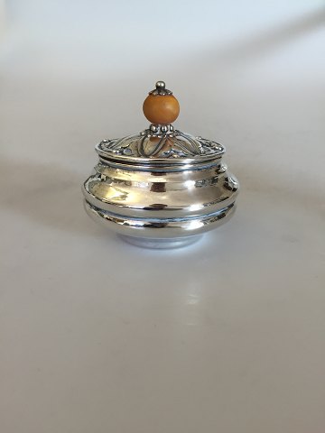 Kay Bojesen Silver Lidded box with Amber. Measures, 6cm high and 6,5cm dia. In good condition.