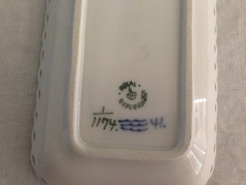 Royal Copenhagen Musselmalet helblonde Sættebakke No 1174. Måler 13cm x 8,7cm og er i perfekt stand.